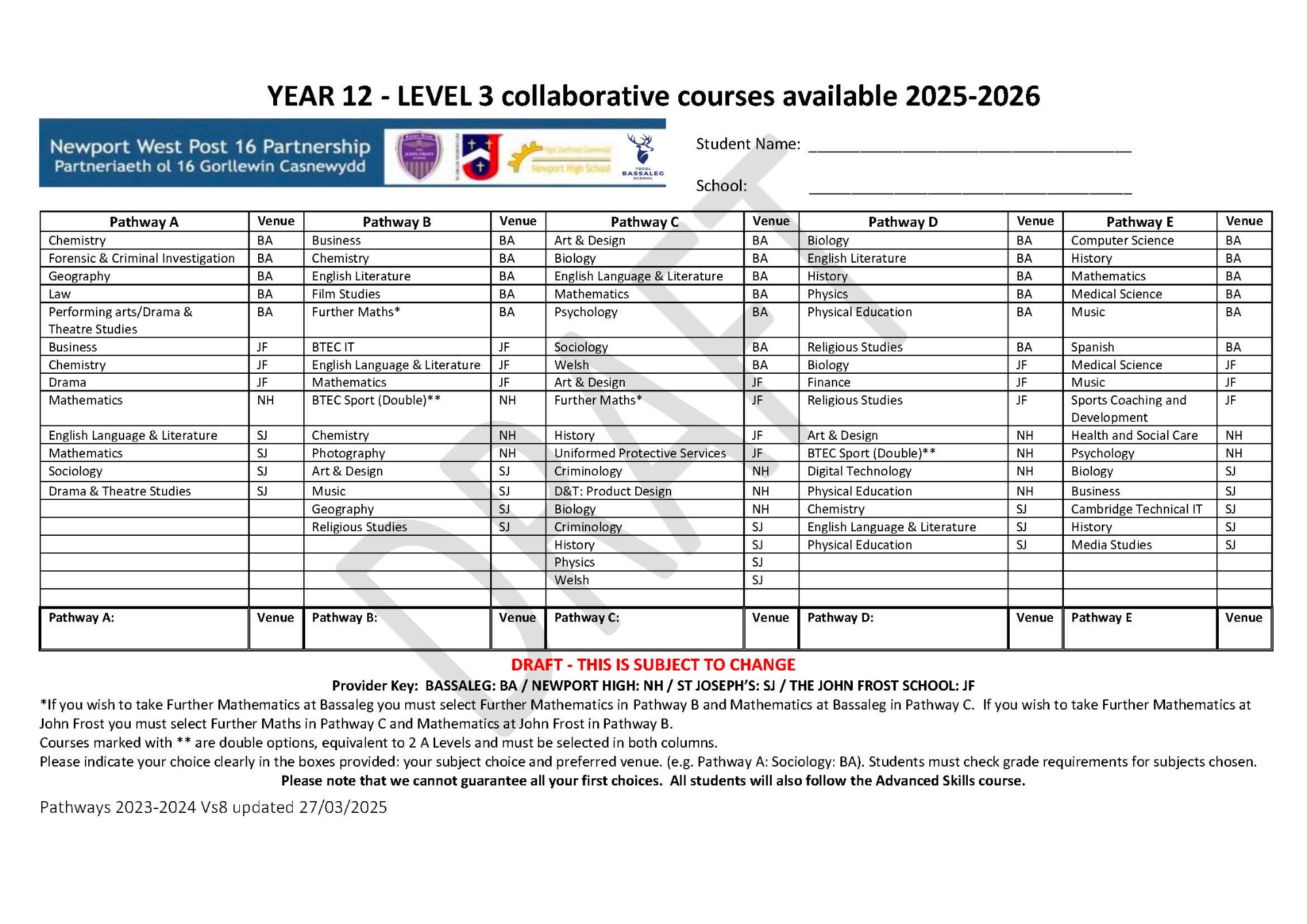 For a full range of collaborative courses available for 2025/27 will be available in Feb 2025.