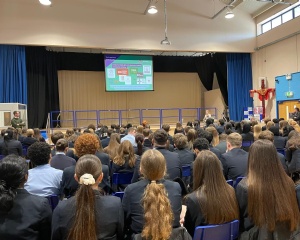 Lowri Thomas, from the Cardiff University Higher Education Roadshow, came to our school in December to speak with Year 10 and 11 pupils about the importance of learning and using Welsh skills outside the classroom.
