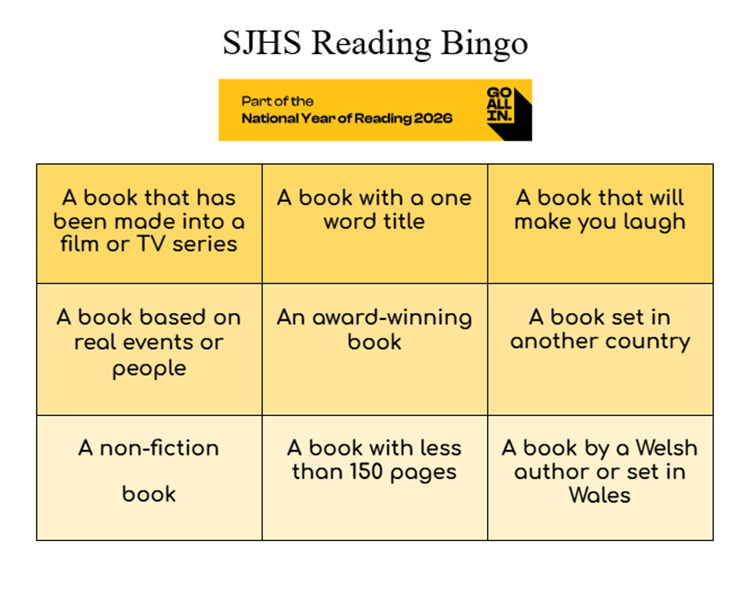 Pupils can collect a Bingo Card from the library. If they can fill each square and read 9 books, they will win a book of their own to read at home.